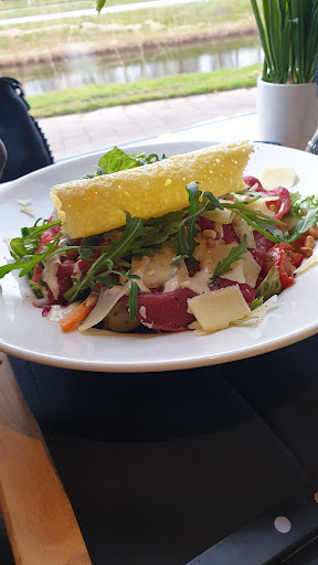 Onverwachts op doortocht hier terecht gekomen. Vooraf knolsederij soepje die goed te eten was, maar iets spannender had gemogen. Nacho's waren van een goed formaat. Wat goed gekozen was: geen guacamole saus er bij. Want doe dit vers of doe het niet... guacamole uit een potje is een no go, en dat hebben ze hier begrepen. Het is een nacho soort waar al een kaaspoeder op zit en dat zie je door de zwarte pitjes. Ik ben er nog niet uit of de nachos op zich hierdoor verpest werden of het juist beter tot zijn recht komt. Het hoofdgerecht hadden we Sjapo Caesar Salad en een Carpaccio Salade. De salades zijn van mooie grote. Hierin was in de carpaccio salade het 'groen' overheersend en daardoor een beetje saai. De Sjapo Caesar Salade was een heerlijke. Met stukken gegrilde kip een goede dressing en de verhouding tussen het groen de overige ingrediënten waren uitstekend! We zaten te vol om nog een toetje te testen. Maar als we in de buurt zijn komen we nog een keer terug. Het parkeren is fijn. Redelijk dicht op de snelweg en de prijzen zijn netjes. De Barman heeft een goede uitstraling en is een goede gastheer, en zal me niets verbazen als er hier heel wat stamgasten komen en elkaar bij naam kennen. Al met al een leuk zaakje. Feedback voor de eigenaar: even een ragebol over het plafond van de heren WC. 1 minuut werk en het oogt...