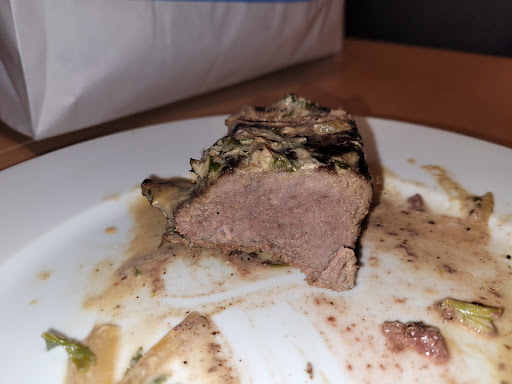 Eten besteld voor mij en mijn vriend ik ben ernstig ziek hij zorgt elke dag voor mij en wilde hem verassen, bestelde zijn favoriet ik betaalde de hoofdprijs maar dacht ach we moeten het leven vieren nu het nog kan. De T-bone Steaks de 1 was rauw en de ander zover doorbakken dat je je kaken erop brak verschrikkelijk taai en droog gewoon niet te eten, de kruidenboter bij het stokbrood leek meer op schimmel, ik had ijs besteld kreeg totaal iets anders dan dat ik besteld had en nog een extra waar ik blijkbaar ook voor betaald had maar niet had besteld. Ik heb alles zo weg kunnen gooien kan wel janken, en de lieve boodschap die ik had geschreven bij de bestelling voor mijn vriend zat er niet eens bij de bon hadden ze er gewoon afgescheurd. Vreselijke ervaring. Ik hoop dat ik mijn geld nog terug kan krijgen gezien ik alles kon weggooien. En geef ze een tip neem mijn vriend in dienst die kan wel koken. Of sluit de tent alsjeblieft maar dit is gewoon echt schandalig.