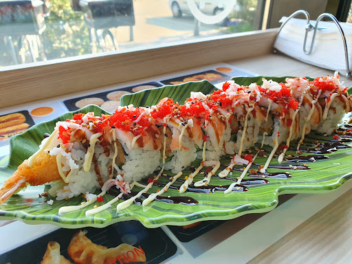 Ik kreeg de indruk dat ze gesloten waren om 13:00 uur. Deuren waren niet open (kan ook zijn om de warmte buiten te laten) maar ook geen enig teken van leven. Pas om 13:10, nadat ik een rondje in het winkelcentrum had gelopen, zat één van de sushi kokken buiten te roken. Ben naar binnen gegaan en had het menu aanschouwd en sushi besteld. Moest ongeveer 20 minuten wachten. Ze namen de tijd om op te starten.