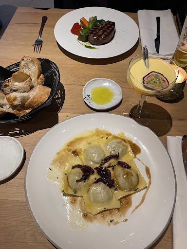 Read moreVery nice, kind of sophisticated place. As I've looked around during the dinner time this is a restaurant mostly for the middle-aged and elder generation. The quality of food, the prices, the elegant atmosphere tends to suggest this too. However I felt welcomed here aswell. Staff was super friendly, helpful and professional. The food was beautifully presented from start to finish. We got home made bread with olive oil as appetizer. Then I had the daily soup: potato-leek soup with shrimps, which was pretty tasty. After that I've chosen the lamb chops for the main course. It was the first time I tried this, and I am really satisfied with it, the tenderness of the meat is just perfect. For dessert we had the panna cotta with mango jelly on top (don't know the proper name of the sauce). The light and sweet dessert was a great choice to finish this great dinner. Thank you...