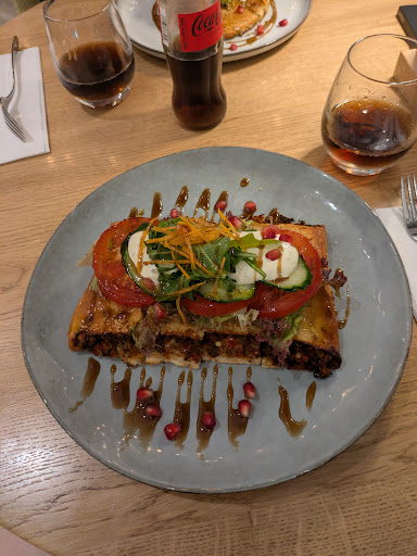 The service was great, quickly helped and we had a coffee ready before we could decide on lunch. We couldn't pick one so we were offered to spilt the options and have half on each plate. Spicy chicken on farmers bread and mixed meats on ... Pastry? I forget the name. Both equally delicious and extravagantly dressed with dressing, sauce and herbs.