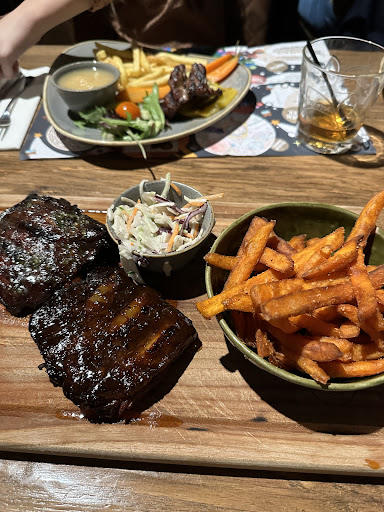 Read moreWij gingen voor onbeperkt spareribs eten. In de middag gebeld dat we s avonds met 8 personen zouden komen eten voor de aktie. Gevraagd tot hoe laat we dan maximaal konden starten met het eten. Dat was 21 uur. Wij hebben de reservering dus om 20 uur gedaan. Bij aankomst werden er meteen op een niet al te vriendelijke manier wat regels mee gedeeld. Zo mocht je niets van een ander proeven bijvoorbeeld. Drankjes besteld en daarna werd er nog gezegd dat er maar voldoende was voor 2 servings. Raar... Want in de middag al gereserveerd en we zijn niet gebeld of er is geen mail gekomen daarover. Uiteindelijk werd er compensatie geboden door sate te geven als de ribs opwaren. Fijn vonden we. Om 20 uur kwamen we dus binnen en na lang wachten kregen we om 21 uur ons eten. 2 kleine (tussen de 5 en 6 ribbetjes per persoon) stukjes sparerib en een hele berg friet. Dit was zeer snel op en nadat we eindelijk eens konden vragen om nieuwe werd dat direct afgewezen en moesten we wachten op een ander personeelslid. Echter zij was heel lang bezig bij de kassa met andere klanten die klachten leken te hebben over de hoeveelheid eten. Dus pas rond 21.30 de 2e portie gekregen. Dit was de helft van de eerste portie. Daarna een 3e keer wat nog minder was (ze hadden verkeerd geteld... Werd verteld dus konden we nog een extra keer krijgen, maar het is voor ons gevoel de 2e serving in 2 porties verdeeld zodat er weer extra tijd gerekt kon worden en zij ons het idee gaven dat het toch 3 rondes zijn geweest.) 2 tot 3 kleine ribbetjes per persoon. Toen was het op. Het zou daarna onbeperkt sate zijn. We kregen 1 stokje per persoon. Zonder satesaus. Toen we dat zagen meteen nieuwe gevraagd en gekregen. Dit keer wel met satesaus. Ook dit was voor een deel van het gezelschap niet voldoende maar de tijd was door het personeel zover gerekt dat de keuken gesloten was. Er was niets meer te krijgen en er werd geschermd met de regels dat de keuken om 22 uur sluit. Leuke regels als je eerst tot 21 uur op je eerste keer eten moet wachten (een uur lang) en daarna nog vaak lange tijden ertussen heeft gezitten. Dit is echt niet het idee van onbeperkt eten toch. Het eten zelf was voor iedereen lekker. Maar de porties zijn veel te klein dus. We gingen met honger naar huis. De porties die we kregen waren het formaat van een borrelhapje. Nooit meer naar deze Beren vestiging voor ons allemaal. Oud Gastel doe er iets aan. Tip: manager, laat je onervaren personeel niet dit soort situaties afhandelen. Zo'n meisje gaat met een rot gevoel naar huis als ze van zoveel mensen klachten krijgt. Zielig voor het meisje dat zoveel gezeur over zich heen krijgt. Zij kan persoonlijk niets doen aan deze situatie en verteld de klant alleen maar wat zij opgedragen krijgt van jullie. Manager sta je mannetje en los dit zelf op op een fatsoenlijke manier. Verschuil je niet achter...