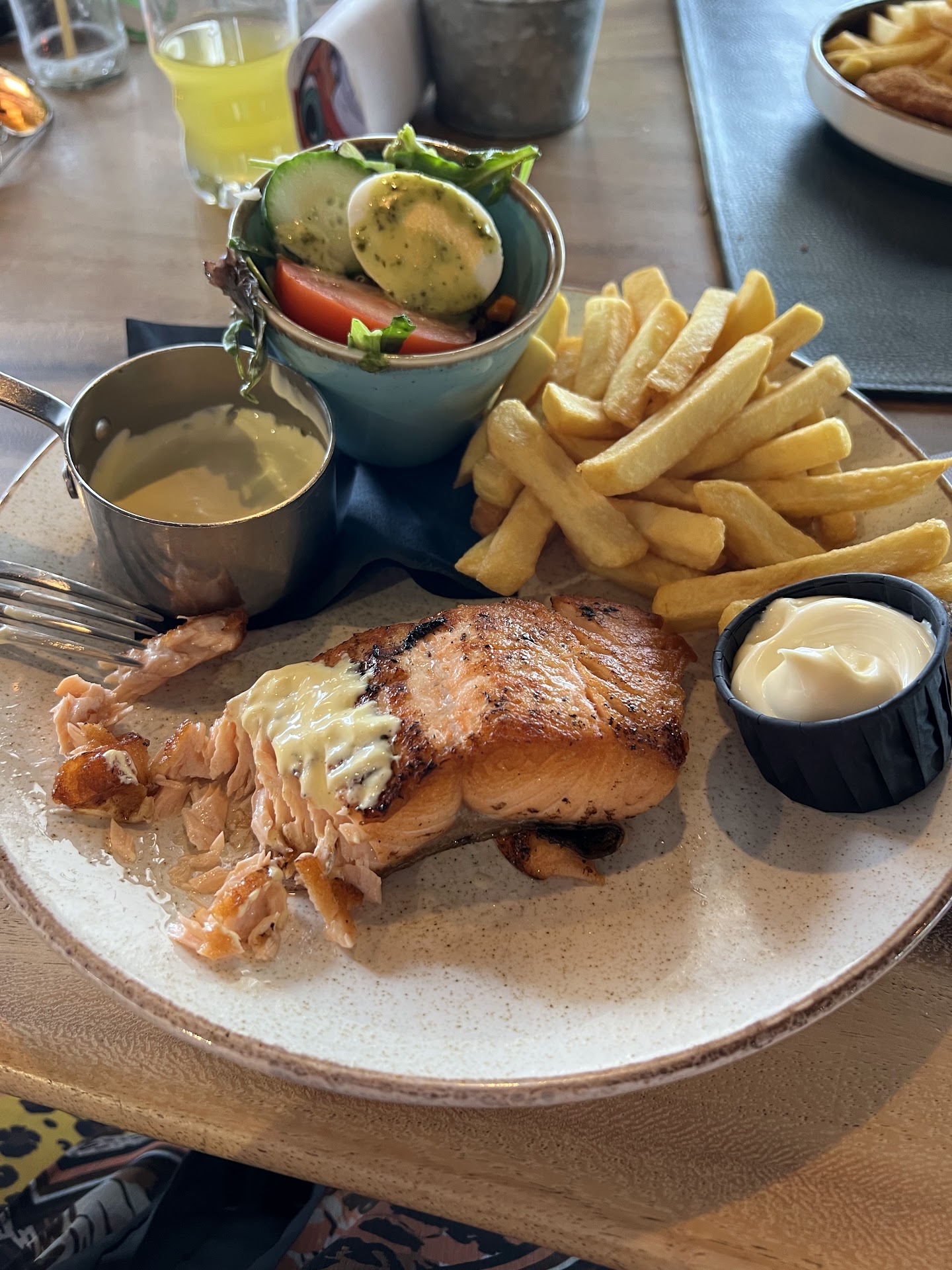 cons: the food was cold food was not fresh -expansive for this quality (20 euro p.p) The atmosphere was not great the staff did not check how...