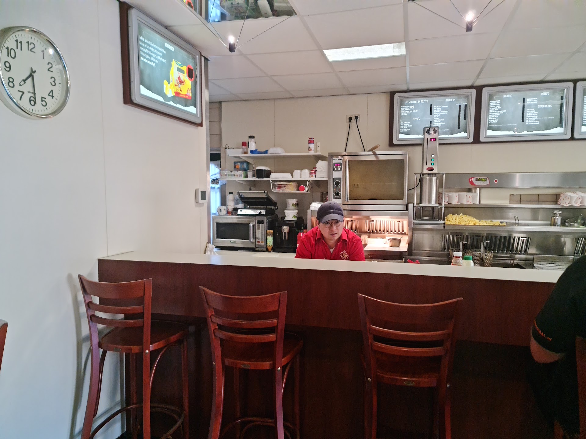 2e keer een andere jonge dame achter de toonbank, deze straalde meer uit dan de eerste. Nam de bestelling duidelijk op, moesten wel lang wachten op onze bestelling bijna 60 minuten. Grote drukte kunnen ze niet aan.