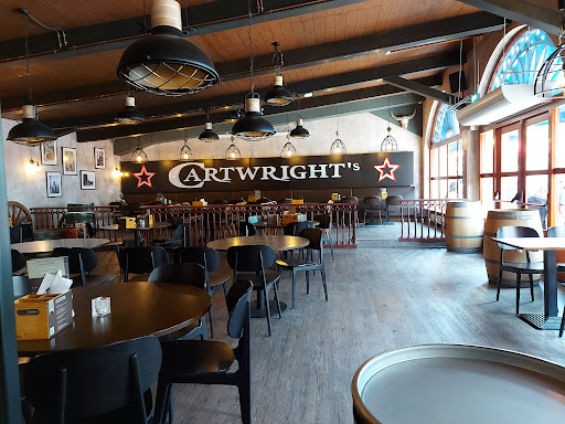 It was 10 degrees celsius outside and almost as cold inside. We had to eat with our jackets on, because the staff said they were not allowed to close the door. Asked to sit further back in the restaurant, but staff largely ignored us as ridiculous as that may sound. At last we got to talk to a manager who let us sit further back. Burger and ribs were ok (kids meal ribs were very dry though), but they forgot the salads. At this point we were fed up and decided to pay and leave. I am flabbergasted.. I expect to pay the inflated prices eating inside the park, but I expect a better...