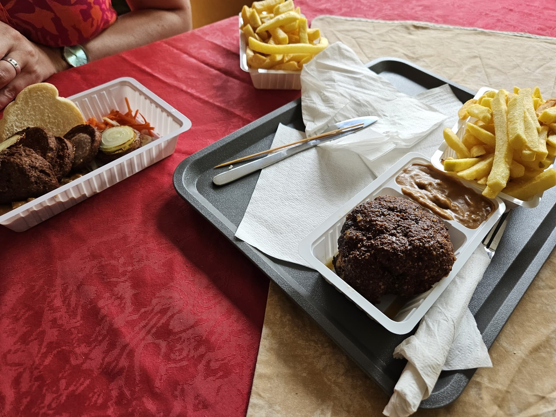 Read moreNa hele goede reviews te hebben gelezen, vol goede moed naar deze snackbar want in slagharen is het eten niet veel. Wij dachten vers gesneden patat/ friet te krijgen maar het is gewoon de algemene fabrieksfriet. Misschien zijn we verwent in het zuiden maar dit is een gewone snackbar niks speciaals aan. Buiten in de kleine patio opgegeten maar mist er...