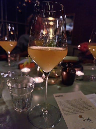 De kas was heerlijk verwarmd met een sfeervol haardvuur en lampjes. We werden de avond bediend door een zeer vriendelijke en kundige bediende die veel kennis en passie had in zijn vak. Zijn enthousiasme maakte ons weer enthousiast en vinden we dan ook erg belangrijk!