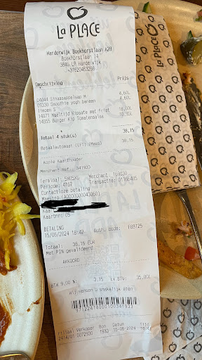 De toiletten waren een verhaal apart. Vies, rommelig, en met een geur die je niet snel vergeet – en niet op een goede manier. Het handdroogpapier was zo dun dat je je afvroeg of het eigenlijk wel papier was, en het apparaat gaf het met tegenzin af, alsof het een persoonlijke vendetta had. Na een worsteling van vijf minuten had je een flintertje papier dat nog niet eens een natte pink droog kreeg. En dan het kassamoment, het hoogtepunt van deze comedy. De jongen achter de kassa besloot zijn innerlijke circusartiest te channelen en schoot, met een onverwachte flair, de dop van een chocolademelkfles recht in mijn toch al treurige groene smoothie. Plons. Gefeliciteerd, La Place, je hebt zojuist de eerste smoothie-milkshake-crossover uitgevonden. Niemand vroeg erom, maar we kregen het toch.
