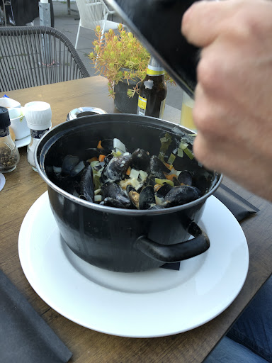 Vervolgens nog eens driekwartier gewacht op een pannetje mosselen en een eendenborst, die lauw warm was, waarbij we nog eens tien minuten moesten wachten op de bij gerechten patat, slaatje en aardappeltjes. Wederom geen bord voor ons kind of een bestekje. In de drie kwartier wachten zijn we om beurten maar gaan lopen met de kleine, want zo lang stil zitten is wel wat veel gevraagd.