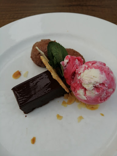 Het terras zat voor een derde gevuld, ik kreeg niet de indruk dat het druk was. Binnen was er 1 tafel bezet, ook niet druk dus. Dan zal de oorzaak voor de over trage bediening ergens anders aan liggen, het stel naast ons heeft een goede drie kwartier op het toetje gewacht.