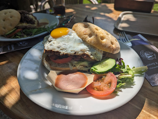Read moreA fun place in the middle of the dunes where kids can play and there is the option to eat and drink something. A 15 minute walk through the woods and dunes from the nearest parking. You order inside and take your drinks to a table, the food is brought afterwards. We were warned of some longer waiting time because it was busy. The food still came pretty fast, maybe 15 minutes. The coffee came from a machine, but was okay. The orange juice was freshly squeezed. The pancake was good and the sandwich with salmon was not bad at all with a good amount of salmon on it. The chickens roam freely, and I didn't mind sharing my lettuce. The service ends with ordering inside and if you want anything else you need to hack inside. 2 adults with pancake, salmon sandwich, 2 cappuccino and oranje juiste came to €38 euros. Not bad,...