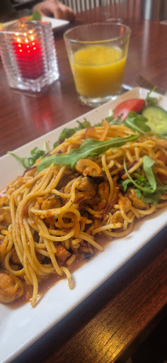 Ver onder de maat! 28 December '24 even hapje eten met de buurvrienden, oh, Italiaans, gezellig. Wij naar binnen: 1e vraag gereserveerd? Niet "goede avond" of "fijn dat u ons bezoekt". Afijn, na onze ontkenning werd met armbeweging geduid dat we richting WC een plekje mochten krijgen. Na drankkeuze onze menu-keuze gemaakt. Komen nog enkele gasten onaangekondigd en die krijgen eerder eten dan wij. Kan gebeuren maar toch. Dan de maaltijd: broodmandje vooraf met kruidenboter bevatte 6 koude bolletjes brood. Maar goed, je hebt honger dus je eet. Dan wat erg dunne uiensoep met 3cm stukje brood en wat kaas. Vervolgens 2 pizza's met overigens goede dunne bodem en redelijk smakelijk. Buurman's biefstuk wordt vergezeld door slecht 1 aardappel in 6 stukjes gesneden en hoophe groenten. Ronduit karig! Mijn vrouw's ravioli con ricotta et spinazie bevatte letterlijk slecht 4 ravioli dobberend in een veel te peperige saus. Geen hoogstandje en absoluut niet de buik vullend. Herhaaldelijk vragend of de ober aub ook een keer onze kant uit wilden kijken resulteerde in nada. Enfin, via de bar gevraagd of deze geweldige ober nog keer wilde langskomen was dan de enige manier om aan drank te geraken.