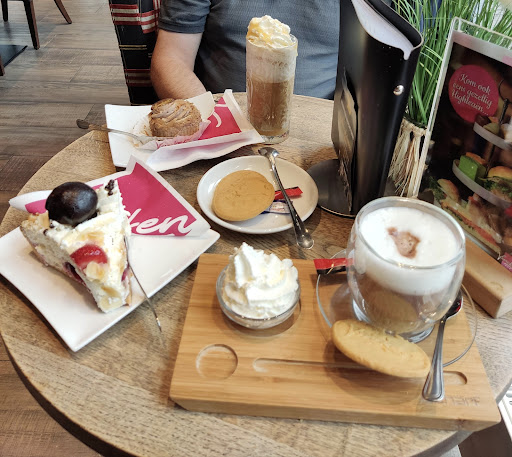 Geen leuke ervaring gehad Het was vol en we bestelde 2 cappuchino. De mensen voor ons hadden hun koffie al en wij zaten al enige tijd te wachten. Ik zag dat een meisje de broodjes druk druk was aant makrn en die oudere dame met korte blonde haren stond even niks te doen dus ik vroeg haar de cappuchino's dat ik maar korte pauze had. Rn ze zei dat ik moest wachten oo dat meisje die ze alles liet doen en al handen tekort had germ.maar ik keek raar omdat ze voor het apparaat stond. En toen zei ze dat ik niks besteld had dat ik daar niet om mocht vragen.dus me moeder moest opstaan om te zegge dat zei afgerekent heeft terwijl we naast elkaar stonden toen we bestelde en dagelijks met zijn 2en koffie drinken daar. Uiteindelijk kwam ze het toch maar brengen en hun weten dat ik altijd 4 suiker heb. Maar die drie extra suiker hield ze extra in der hand en nam ze weer mee terug. Maar gelukkig had ik nog extra suiker op zak.😉( omdat mij ook alleens gezegt is dat ik van tevoren aan moet geven hoeveel suiker ik wil want die moet ik dan vooraf betalen.)😠 dus ik hoefde haar niet acbterna te lopen om te vragen of ik misschien extra suiker mocht. Maar wij gaan niet meer. Die...