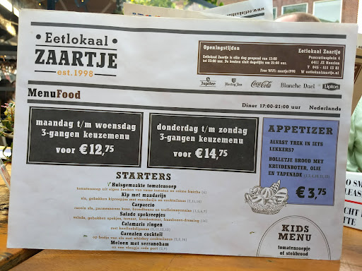 Read moreGisteren gaan brunchen in Eetlokaal Zaartje, net optijd voor ontbijtje. Prijs hiervoor is prima €4.95 voor een boterham wit of bruin met ham en kaas, een crosantje met jam, een gekookt eitje ( heelaas koud) een beetje sla en onbeperkt koffie of thee. Op zich niks mis mee, toen ik vroeg of de boterham kon worden verandert in een broodje kon dit niet (tegenvaller) dit terwijl er wel broodjes op de kaart staan en ik er best wat meer voor had willen betalen. De verhouding in de prijs tussen de broodjes op de kaart en het complete ontbijtje staan echter totaal niet in verhouding. De gerechten op de kaart vind ik erg prijzig maar zien er wel prima uit ( gezien bij de andere mensen op het terras 😄). Helaas staat de klant niet centraal, naast ons kwamen mensen zitten die ook graag een ontbijtje wilden. Dit was echter niet meer mogelijk ze waren 5 minuten te laat want onbijt kan bij Zaartje maar tot 12.00u. Persoonlijk vind ik dit wel erg de klant is koning. Het personeel is echter verder wel vriendelijk en ze doen het prima. Het aanbod is ook goed, genoeg keus voor iedereen.