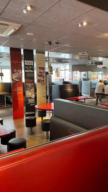 Read moreIk heb hier gisteren gegeten. 4 van de 6 bestelzuilen zaten zonder papier en als er dan een medewerker komt kijken, snapt hij niet wat er mis, terwijl er zelfs een bericht op het scherm staat 'nearoutofpaper'. Daarnaast heb ik geen enkele bestelling gezien die goed is gegaan in dat kwartier dat ik binnen stond. Een meneer die table-service had, moest zijn eten alsnog komen halen terwijl het er al 5 minuten stond, die bestelling betrof ook nog eens ijsjes. Niet fijn als die al 5 minuten staan te smelten. Op de plek waar het eten opgehaald moet worden staan ook nog vrienden of familie van een medewerker te praten. Daardoor moest je je door 5 mensen wurmen om überhaupt je eten te kunnen pakken. Terwijl het me toch logisch lijkt dat je als medewerker even vraagt of je vrienden/familie aan de kant wil gaan zodat de gasten hun eten fatsoenlijk kunnen bestellen. Daarnaast wilde een vrouw aan de kassa bestellen, zij stond hier al zeker 2 minuten te wachten op een medewerker, terwijl de helft van het personeel aan het praten was met die vrienden/familie. Deze mevrouw vroeg toen ook richting het personeel of er nog iemand kwam die haar bestelling zou opnemen. Ze had beter tegen een muur kunnen praten, die geeft nog meer reactie. Het personeel bleef stil staan en reageerde niet. Daarnaast was er nog een mevrouw uit de drive die ook een onjuiste èn incomplete bestelling had gekregen, hier werd geen excuses aangeboden en het aanwezige personeel stond nou niet perse in de startblokken om de fout te herstellen. Op half tempo kwam er eens een tweede medewerker die het nog eens vroeg en toen werd er eens heel rustig de juiste bestelling gemaakt. Onze eigen bestelling was ook onjuist, maar wel in den positieve, wij hadden extra frieten en saus. Een 'smakelijk' kwam ook nog maar net uit de mond van de medewerker die ik had bereikt nadat ik me door de vrienden/familie had geworsteld. Ik raad het absoluut af als je ook een beetje service verwacht. Iets waar de manager echt naar moet gaan kijken, want op deze manier verlies je klanten, ik zal in ieder geval niet meer te zien zijn in dit filiaal, enkel en alleen door de service, maar kun je wel van service spreken als die er niet was. Ik zal er dus niet meer komen door iets...