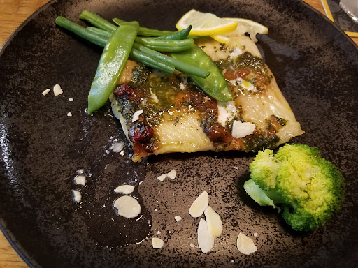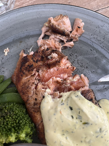 Nice place with good service. The "bread basket" was a lovely starter, with two types of bread, salsa, and a nice mayonaise-like spread. Another starter dish, pulled chicken, was a bit dry and too large for a starter. For the main dishes, I can recommend the seawolf and salmon. Like all main dishes, they come with a side salad, potatoes and french fries. For our group of 6, the one basket of fries was bit small, but they did bring more after we asked. They also have a "senior" menu, with smaller portions, to the delight of the 83-year old person...