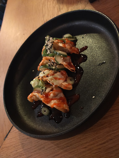 Een leuke zaak die een mooi groot terras heeft in de zomer en ook mooi binnen. in de zomer een heerlijke pokebowl gehad en in de winter een verrassingsmenu met de gyoza vooraf. Iedere keer anders maar echt super lekker hier. Mooi krokant en super qua smaak.