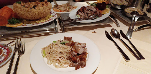 Jak na Chińską restaurację jestem mocno zawiedziony. Nie wiem z kąt tyle gwiazdek ale na pewno tyle nie dam. Obsługa przez kelnera tuż po wejściu bardzo ale to bardzo nie komfortowa. Zamiast zaprosić potencjalnego klienta do stolika lub zapytać czy chciałby pan/pani coś zjeść musiałem tłumaczyć po co tu wszedłem, serio ( a po co się idzie do restauracji????) Jest to osoba która reprezentuje restauracje i od niej wymaga się naj więcej zaraz po kucharzu. Znajomość menu??? Po tym co usłyszałem chyba zerowa. Po poproszeniu o rekomendację ostrego dania z kurczakiem usłyszałem że każde jest inne. ( Ooo, nie wiedziałem. Myślałem że każde jest takie same) Żenada. Więc usłyszałem że kurczak curry jest ostry ( nie dowierzałem w to co słyszałem ) . Po rozpoczęciu posiłku zaproponowano mi jakąś przyprawę ze stolika której nazwy nie wiem do ten pory aby było ostrzejsze. 🤨 Jestem ciekaw ile czasu to tam stało. To jest wprost niedowiary. To jest chińska restauracja więc powinno się wymagać czegoś więcej. Jeżeli chodzi o menu dość skromne ale może to i lepiej. Jednak po przeczytaniu karty dań wynika że nie jest to chińska restautacja. Klimat na to wskazuje a menu nie. Dania z Indii , Indonesii i nie wiem z kąt jeszcze. Zlepek wszystkiego. Dania podane schludnie i estetycznie. Porcję całkiem spore. Jednak męszczyzna większych gabarytów musi pomyśleć o starterze i deserze bo danie główne nie wystarczy. Jeżeli chodzi o herbatę hmmmmm. Niby chińska restauracja a jednak Lipton w torebkach. Zielona ( dwie, przyniesione w dłoni abym mógł wybrać) tego wam nie wybaczę. Same danie było smaczne lecz żeby nazwać to kurczak curry??? Może w wersji LITE. Sam kurczak rozpływał się w ustach. W pewnej chwili zastanawiałem się czy to aby na pewno kurczak. Bardzo dziwna tekstura tego mięsa. Jako całość wypadło całkiem ok. Można powiedzieć przeciętnie. Jednak czy chciałbym tam wrócić??? No raczej nie. Bynajmniej nie z tym kelnerem. Ceny przystępne. Tyle samo wydał bym w maku. Całość 35...