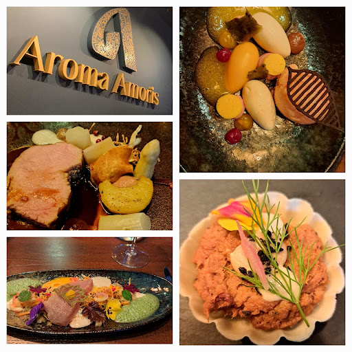 Read moreVoor onze trouwdag hadden we gereserveerd bij restaurant Aroma Amoris en dat was een schot in de roos. Wat een prachtig ingericht en sfeervol restaurant; echt een plaatje, zo ook de smaakvolle gerechten. We kozen voor het 4 gangen menu met wijnarrangement. Er is geen menukaart maar er wordt vooraf gevraagd of je ergens allergisch voor bent of iets niet lust. We lieten ons graag verrassen en dat werden we zowel door de verrukkelijke gerechtjes als de bijpassende wijnen. Iedere gang was een oogstrelend kunstwerkje met een palet van diverse smaken.