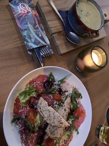 Read moreWij hebben als groep collega's gekozen om hier te dineren. Helaas hebben we het niet als erg positief ervaren. Het leek alsof een van de meisjes van de bediening haar eerste werkdag had. Ze kon onze bestellingen niet correct opnemen en liep ook de hele tijd weg tussendoor. De communicatie liet behoorlijk te wensen over. Het aller vervelendste was dat onze gerechten niet tegelijk werden uitgeserveerd. De ene helft had het hoofdgerecht op en de andere helft moest het nog krijgen.. Ik snap dat een grote groep misschien iets langer de tijd nodig heeft om alles juist te timen maar geef dit dan even netjes aan. Ik heb tijdens de voorgerechten een halfuur met een bord carpaccio voor mij neus gezeten voordat de laatste voorgerechten kwamen. Ook pas nadat iemand dit had aangegeven. De bediening was weinig aan tafel en vroeg niet of het naar wens was. Ook heeft iemand 2 uur op een kopje soep moeten wachten.. al met al hebben we na het hoofdgerecht ( 3 uur in totaal verder) besloten om het maar te beëindigen. Nadat meerdere mensen hadden geklaagd was het excuus dat het erg druk was. Maar er zaten naast onze tafel maar 3 andere tafeltjes. Op het einde werden we compleet genegeerd.