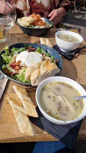 De serveerster die onze bestellingen opnam, was bijzonder onvriendelijk. Hoewel het terras er gezellig uitzag en de bezoekers in vrolijke stemming, kregen we te maken met een ongepaste service. We werden geïnformeerd dat we alleen aan niet-gereserveerde plaatsen mochten zitten, wat op zich geen probleem was. We moesten echter een tafel vinden die nog niet was afgeruimd wat ons helaas niet lukte..