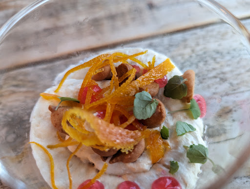 Amuse, prachtige omschrijving maar flauwe smaak. Eigenlijk gold dat ook voor de andere gerechten m.u.v de garnalencocktail die was goed. De opmaak prima de basis ingrediënten zoals de gerookte paling en de andere vis zijn goed, maar de mouses, sausjes, groente smakeloos, geen enkele toegevoegde waarde eerder het tegendeel. Vervolgens de wijn, men biedt op de kaart bijpassende wijnen bij elk gerecht. De dame die ons serveerde wist er niets van, dus konden we eerst zelf kiezen uit 1 vd 3 huiswijnen bij het voorgerecht. Daarna kwam de andere serveerder met de wijn bij het hoofdgerecht, ook hij bekende dat het eigenlijk zijn vrouw was die alle verstand had van wijn. Hij serveerde voor mijn echtgenoot een Chileense rode wijn, maar helaas die was net zo warm als het restaurant😞. Deze terug gegeven het alternatief was een koude cabernet sauvignon. De witte wijn was ok van temperatuur. We hebben de nagerechten overgeslagen. Kortom de medewerkers doen hun best maar het resultaat is beneden peil. Gerechten zien er mooi uit maar daar is het mee gezegd. Prijs, kwaliteit totaal niet passend. Gault Millau zou weer eens lang...