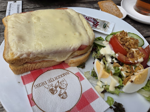 Read moreLeuke authentieke Bakkerswinkel met terras. Na een fietstocht dachten we lekker koffietje met een gebakje . Op de rekening stond ineens 80 cent extra ( een opslag op elke gebakje van 40 cent ! Op al redelijk prijzig gebak maar dat stond netjes aangegeven in de vitrine) . Bij navraag kwam de verkoopster met de verklaring dat ze dat voor vaatwaskosten enzo extra moeten rekenen. Wij hebben daar nergens een aankondiging van gelezen of vooraf een infootje over gekregen ofzo…. Ook geen sorry… bij onze navraag … meer de indruk dat de dames die dat moeten zeggen het ook wat raar vonden. Niet netjes naar ons als klant aan wie ook al selfservice bij bestellen, ophalen en terugzetten wordt gevraagd. Daar zijn we zeker niet te beroerd voor maar stiekum extra geld afrekenen is niet netjes. Nare nasmaak van dit bezoek! We hadden natuurlijk 80 cent terug kunnen vragen maar daar gaat het niet om. Dit is geen nette actie om je gasten mee te benadelen . Voor ons volgende keer waarschijnlijk een...