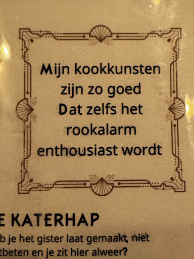 De barman was attent, rustig en heeft een goed oog en overzicht. De kok/chef heeft alles heerlijk gemaakt. De menukaart is grappig met leuke anekdotes Ik had heerlijk oerbrood met kroket en een salade erbij. Ook de combinatie van Mayonaise met mosterd heerlijk want niet iedereen vindt mosterd lekker. We hadden ook de Cinq Oef besteld; zowaar vijf eieren met heel veel spek en erg smakelijk. Complimenten voor dit establishment! Wij komen zeker...