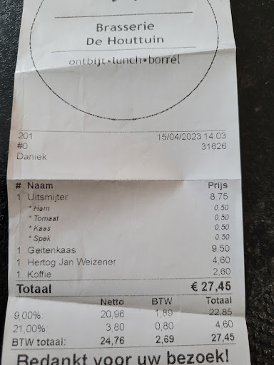 Vandaag de kunstmarkt in Hillegom bezocht, leuk en aparte dingen. Na de Markt wilden we nog naar de dahlia dagen bij kasteel Keukenhof,. maar eerst bij Brasserie bij Daan geluncht. Goed terras on de zon. De bediening was snel en uitermate vriendelijk. De vers geperste jus goed. De bruine boterhammen met warme geitenkaas goed. Evenals de bruine boterhammen met pikante kip. Alles was goed belegd en goed verzorgd. Niet geheel onbelangrijk. De smaak was prima. Bij Daan is een prima plek om te lunchen. Opvallend was, dat je veel herkenning hoorde van personeel naar klanten toe en vice versa. Lijkt me...
