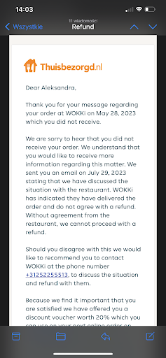 THEY STEAL MONEY!!!!! I order food, they forget to send it (they call me next day to say they forget to bring me order), but they didn’t forget to charge money for food. Of course when I claim I want my refund by thuisbezorg they said they did deliver that!! That’s maddens. No food no money. STEALERS! GIVE ME...