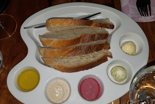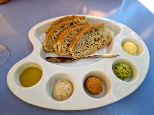 Onze drankjes werden snel opgenomen. We kozen beiden een wijn, maar de serveerster bood ons cava aan vanwege Valentijn. Dit leek een leuk idee, maar achteraf bleek het €7,50 per glas te kosten, terwijl onze oorspronkelijke keuze €4-5 was. We kregen wel een broodje van het huis vooraf.