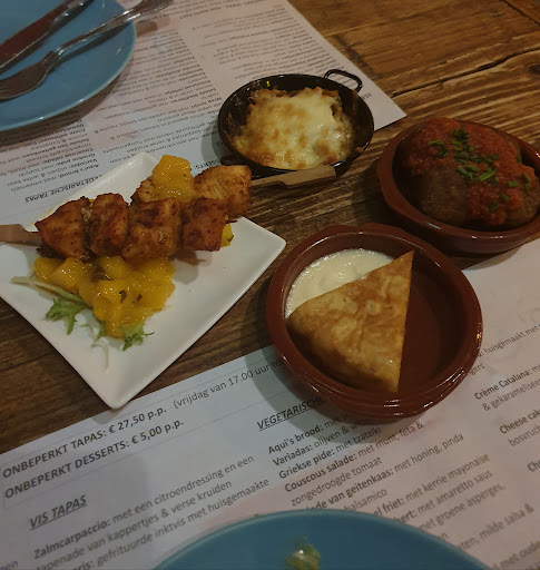 Aqui is enige jaren geleden per toeval een van mijn lievelings tapas restaurants geworden. Het is niet in de buurt, dus toen ik laatst weer eens naar Aqui ging had ik er veel zin in! Dat bleek helaas een teleurstelling. Het eten is er enorm op achteruit gegaan, waar het eerst zo lekker was omdat het allemaal vers smaakte, was nu alles droog. De grootte van de porties liet te wensen over. En echt op elk gerechtje lag lente ui, totaal onnodig. Mijn carpaccio had duidelijk opgestapeld gestaan met andere bordjes, want de afdruk van het andere bord stond in de carpaccio. Nu snap ik dat niet alles vers kan zijn, maar laat het er dan in ieder geval vers uitzien. Ik heb Aqui meermaals bij vrienden aangeprezen, maar die tijd blijkt voorbij. Heel jammer om te zien hoe een restaurant met zulk lekker, smaakvol en mooi ogend eten zoveel verkeerde keuzes heeft gemaakt. Helaas was dit voor mij mijn laatste bezoek aan mijn, voorheen favoriete...