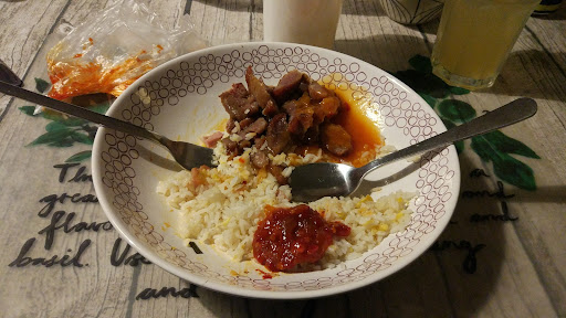 Read moreHet eten is prima. Wat mij irriteert is het feit dat klantvriendelijkheid ver te zoeken is. Je moet overal in herhaling naar vragen: Ik heb altijd sambal erbij. Ik vraag altijd om een bon, (Vraag niet naar de kwaiteit van de 'bon' )maar nee hoor, niets komt vanzelf. Steeds weer opnieuw vragen. Het niveau van klantvriendelijkheid is een beetje vergelijkbaar met het interieur..Al 30 jaar niets aan gedaan. O wacht: Corona maatregel: flinterdunne folie gespannen in losse delen over de breedte van de balie en een lelijk handgeschreven bordje: Afstand houden. Als je belt is het standaard voor je iets kunt zeggen: Moment aub.....al bij al: Ik ben er wel klaar mee, ik rij wel...