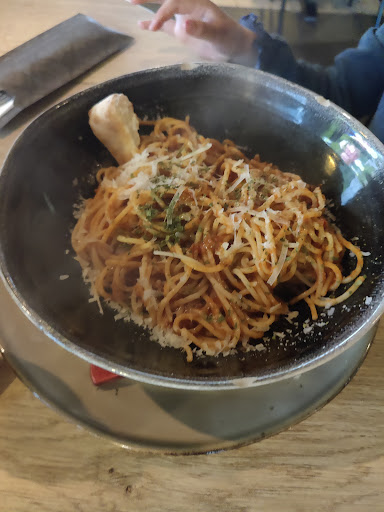 Vanavond gegeten met 5 man. We moesten nog even wachten op de 5e persoon maar wilden wel alvast wat te drinken bestellen. Na het brengen van de drank, zijn de serveersters enkele keren aan tafel geweest of we wilden bestellen en of het nog lang duurde voordat ze 5e persoon kwam. Uiteindelijk waren we compleet en maar meteen eten en weer drinken besteld. Toen wij klaar waren met eten en ze de tafel kwamen leegruimen werd ons gevraagd de tafel te verlaten, want het was druk. Nog nooit heb ik ergens meegemaakt dat er gevraagd werd de tafel te verlaten terwijl je net het eten op hebt. Ik kom iig niet weer.