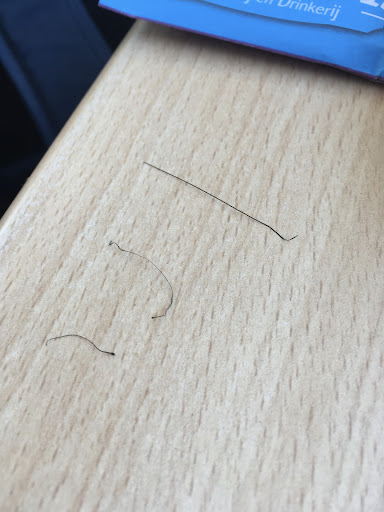 Google-recensie is bedoeld om openhartige persoonlijke ervaringen te delen, en dat is wat ik deed: geschokt door de haarachtige substantie (minstens vier!), eerst met u overlegd, ging met je chef-kok naar de keuken, maar kon het niet verifiëren (na verwarming werd het borstelhaar gekruld, maar zonder ronde kop aan de bovenkant).