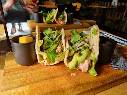 Read more(Stars given by family) We were here on a very busy day, so we expected our food to take a while. But this was insane.. about 45 minutes for 2 sandwhiches and a salad. When we mentioned it a bit slightly to the waiter, He said he had "no idea what's going on". Great.. Food was warmly served and sauce was cold. I liked the design here, but it was very overwhelming. Reccomended...
