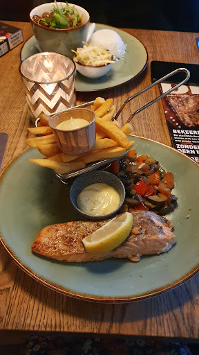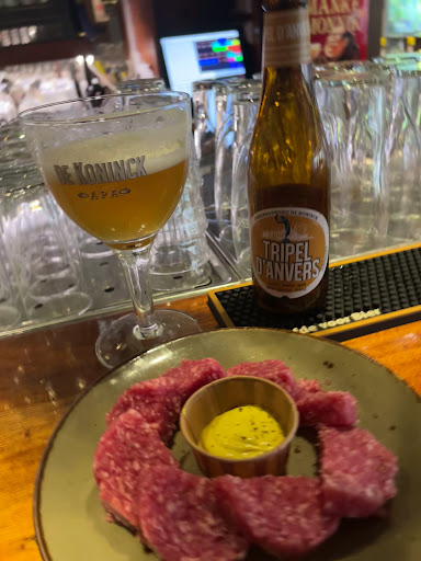 Read moreHier recent wezen eten. Om zeven uur gereserveerd, eten stond pas tegen negenen op tafel. Een hamburger die te ver doorgebakken en dus te droog was op een droog geroosterde bol met als garnering twee plakjes tomaat en drie plakjes augurk, geen saus. Daarbij een klein kommetje sla die voornamelijk bestond uit de witte (stronk)delen van de krop met daarover een beetje ondefinieerbare dressing. Bij dit gerecht hoorde friet maar die kwam pas veertig minuten later. Het dessert: een opgewarmde brownie met een bolletje vanille ijs tegen elf uur. Één en ander zou je kunnen wijten aan de drukte maar opmerkelijk genoeg stond het bedienend personeel wel elke tien minuten bij je aan tafel met de vraag of je nog wat wilde drinken. Niet onder de indruk van het aanbod speciale bieren: slechts één echte trappist (Rochefort 8) op de kaart. Afrekenen was ook een drama en duurde veeeel te lang.