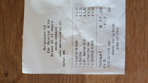 Read moreGreat find. My family and I were in the Hoorn area for the first time and were looking for a place for dinner when we happened upon De Rooie Kip. It was fantastic, really such a wonderful find. It has a nice interior and the tables are well spaced. I felt fine eating inside. The menu is not huge but has many good options. I ultimately got the grilled goat cheese dinner salad and my husband got the beef stew. We both thoroughly enjoyed our dishes. We shared the creme brûlée (amazing) and each had a “kiss of fire” coffee drink for dessert. The service was excellent too, friendly and attentive enough but not overbearing. We will...