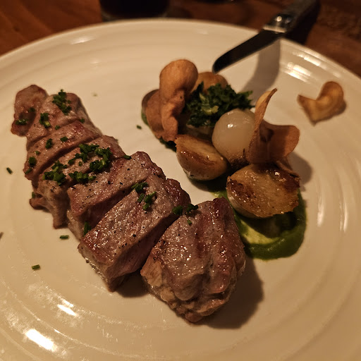 Read moreHet pand is fantastisch. De locatie is schitterend. De inrichting oogt simpel en is door de houten balken en de karakteristieke ramen een fijne combinatie. De jonge medewerkers in de bediening ogen vrolijk en zijn in staat om de gasten te voorzien van het gevraagde. Niet opdringerig maar ook niet te terughoudend zorgen ze voor je. Verder is het tenue niet spetterend. De ene loopt in spijkerbroek , een ander in een legging en allen in een polo met logo van het restaurant. Wellicht iets meer netheid. De gerechten op de kaart lezen lekker. Maar van de prijzen erachter schrok ik wel. Mijn tafelgenoten was het ook opgevallen. De gekozen gerechten kwamen en de carpaccio werd iets taai vlees bevonden. De steak tartaar was flauw en kwam in een erg diep schaaltje waar met moeite met mes en vork uit gegeten kon worden. De zwezerik miste de echte bezieling die dit orgaanvlees kan hebben mits goed bereid. En de vegetarische ravioli zag er niet als ravioli uit en werd ook matig bevonden . De desserts waren gelukkig lekker en zoet. Maar bij de koffie kwam een Crème Brulée waarvan de Crème helaas klonterig was en de krokante suikerlaag bedekt was met aardbeisorbet waardoor de krokantheid weg was. Geef mij toch maar een lekkere bonbon of goed gebakken koekje bij koffie of thee. De gepeperde rekening was best...