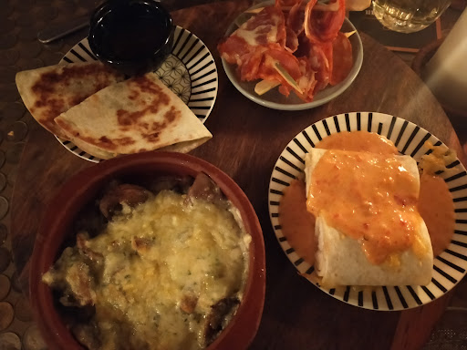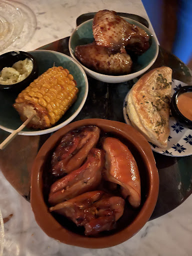 De rode huiswijn (erg lekker en soepel) zou zo een fles of 6 willen kopen voor thuis Snelheid van uitserveren Dit waren mijn topgerechten... Gerookte zalm, de rooksmaak zit er goed in empanada met gekruid gehakt, luchtig deeg met een mild pittige tinteling op je tong serranoham was perfect gekruide kip met roomsaus goddelijke lekker en goed voorzien kruiden aïoli was hoog op smaak geserveerd met rustiek stokbrood