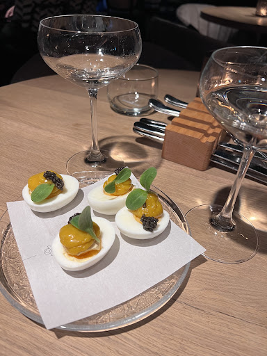 Read moreThe restaurant is beautiful, the location is great, with parking space close by. The atmosphere is lovely. But the food is a total dissapointment. We had the filled eggs with caviar as a starter and that was very very dissapointing. The eggs were literally taken out of the fridge, cut open and had some sauce put on top with caviar. It was not enjoyable. Filled eggs are supposed to be actually filled, not with something on top.