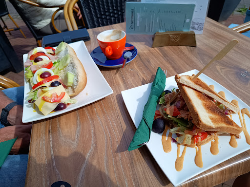 Read moreHet terras ligt vlakbij en biedt zicht op het veer over de Maas. Genoeg te zien. Ondanks dat het terras niet vol zat, lang moeten wachten totdat iemand vd bediening kwam. Kreeg uiteindelijk, net als een mevrouw van het tafeltje naast ons, een foutief, niet besteld drankje. De tomatensoep was lekker op smaak, de tosti kon wat uitnodigender opgemaakt worden, was...