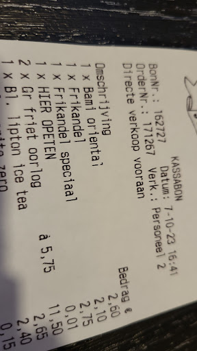 Tijdens het friet halen wilde wij graag nog 2 zakjes zout erbij.