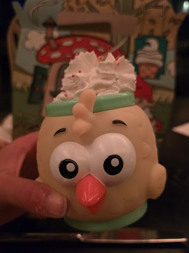 Als hoofdgerecht had ik de paddestoelen risotto. Het was lekkerder dan het er uit zag. Heerlijk, precies zoals ik had gehoopt, romig en smaakte echt naar paddestoelen. Mijn man had de kogelbiefstuk. De medium biefstuk was goed van smaak. Mooi rosé, wel beetje taai. Let op, frietjes zitten er niet bij, dus die moet je bijbestellen. Dat had de bediening vooraf moeten zeggen, want daar moesten we dan weer op wachten. De bijbestelde ambachtelijke frietjes werden geserveerd met een sausje en waren nog heet en vers. We hadden geen toetje besteld want het was al laat, want het duurde best een tijdje voordat we ons hoofdgerecht kregen. Dat kwam omdat het piektijd was. Mijn dochter had de smulbox besteld en kreeg een leuke ijsbeker, stuiterbal en stempel erbij.