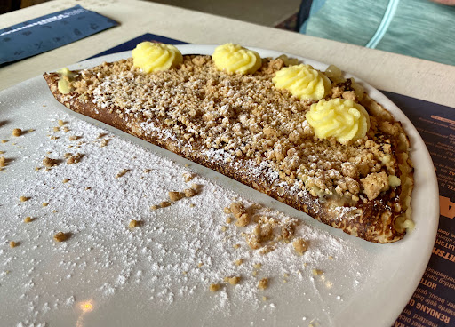 Read moreThe unfriendly personal (especially the manager) didn't allow us to sit outside to eat (only to drink?) due to possible rainfall that didn't come. We were then asked to change seats twice, due to bigger groups that reserved the table for later, even though we were escorted to this table. After sitting down, we waited to order for about 45 minutes before a waitresses helped us. She was spending her time on the phone, or walked straight passed without noticing us. Pancakes themselves are expensive - about 15 euro's each, with drinks being 4.25 euro's for a basic (Palm) beer (cheapest tab beer is 3.75), without the option for personal preferences on the pancake to be taken into account according to the menu. The food itself ranges from fair to good. There is also a nice playground for kids. Nevertheless, not a great...