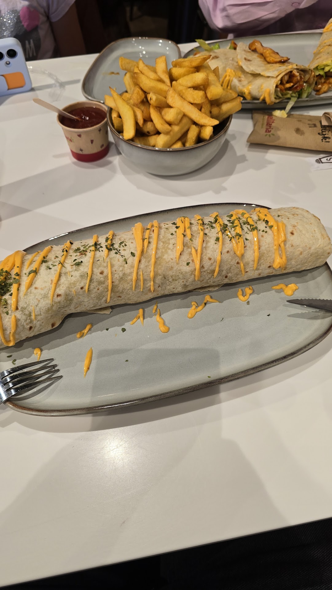 Na te hebben besteld op thuisbezorgd, zou het 45 minuten duren tot we ons eten zouden hebben. Dat duurde zo'n 1,15 tot 1,30 uur. Als het druk is kan dat gebeuren maar hoe kan het nou druk zijn op een door de weekse dag rond een uur of 3. Nadat we onze bestelling kregen hebben we niet eens alles van onze bestelling gekregen. Pulled chicken burger menu, kregen we alleen maar de burger en niet de rest. Dus ik bel neemt er iemand op die vraagd naar het adres, ik vertel dat zegt deze jongeman; de bestelling kan er elk moment zijn. Ik zeg ja die is er, te laat en niet compleet. We hebben een burger menu besteld maar alleen de burger gekregen. Hij zegt oh heb je geen pulled chicken gekregen of? Ik zeg nee wel de burger maar niet de rest. Hij verteld me dat hij gelijk de patat en salade gaat maken en komt brengen, dit duurt vervolgens ook zo'n 20 minuten voordat het er is. Door het personeel wordt er tegen je gesproken alsof je bevriend bent met ze en niet een klamt bent. Vind ik erg respectloos! En blijkbaar is het ook moeilijk om een bestelling te maken die niet zo groot is, om compleet te...
