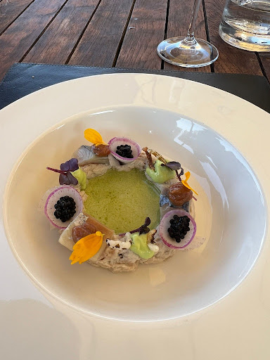 Read moreLove this place. This is the second time we have been there for lunch. We arrive by boat and have been able to moor outside on both occasions. The food, staff and atmosphere are all excellent. the presentation of the food is exceptional. The menu changes and is quite small, but I like that as it means they get things right. You choose one starter, one main and a dessert for a set price of Euro 42. There are some items available to start e.g. oysters and tehre is a...