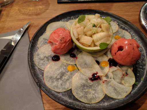 De Iberico Vleesvingers zijn een mooie simpele starter die het ook goed doet op een terras met een biertje. Krokant stukjes varkensvlees, wat lijkt gefrituurd te zijn. De rub geeft een mooie smaak van BBQ vlees. De sukade gebakken als biefstuk was heerlijk mals. Medium rare is hier zoals ik het graag zie. Roze in het midden, geheel warm en sappig. De karamel banaan parfait smaakte goed, maar had iets zachter gemogen, was nu bang dat als ik de vork erin stak deze van tafel...