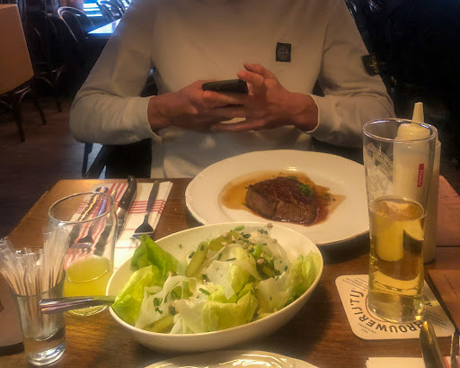 Wat mij daarnaast bijzonder opviel, was dat er zonder vragen een bakje water voor de honden tevoorschijn kwam en dat mijn water, naast de wijn, bijgevuld werd. Het eten was verrukkelijk, de zalm verrassend van smaak en mijn dry aged entrecote was eveneens erg lekker net als de verse friet en de (zelfgemaakte?) mayonaise.