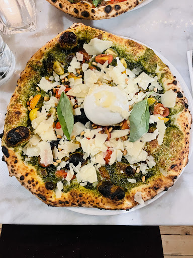 Erg goede pizzeria. Hij is wat aan de prijzige kant, maar dat is te begrijpen. De ambiance is namelijk erg chique, de bediening is erg vriendelijk (en niet te opdringerig) en het pizzadeeg is uniek. Er wordt veel aandacht besteed aan deze bodem, de bereidingswijze wordt namelijk door de bediende uitgebreid uitgelegd. En dat is is terecht: het een erg luchtige, elastische bodem met van die mooie donkere pantervlekken - typisch Napolitaans dus!
